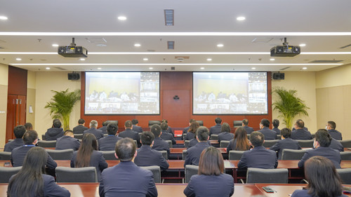 評估活動以視頻方式開展,中央企業黨史學習教育第一指導組成員在主會場,集團公司領導、總部職能部門負責人、二級企業領導班子成員、基層黨員、離退休老同志、群眾代表等200余人通過視頻方式在各分會場參加評估活動。