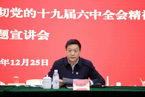 施芝鴻緊緊圍繞學習習近平總書記重要講話和黨的十九屆六中全會作出的《決議》,圍繞深刻認識和把握黨中央對黨的十九屆六中全會議題的考慮和對起草此次《決議》的明確要求,對《決議》頂層設計相關的十個重大問題及其精髓要義進行了深入闡釋和系統講解。