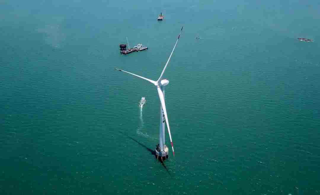 隨著福建省委常委、福州市委書記林寶金,省委常委、副省長郭寧寧,東方電氣集團黨組書記、董事長俞培根,總經(jīng)理、黨組副書記徐鵬等領(lǐng)導共同啟動運行指令,安放在試驗平臺的風電主機開始徐徐轉(zhuǎn)動,額定功率穩(wěn)定加載至13兆瓦,標志著東方電氣13兆瓦海上風電機組成功下線。