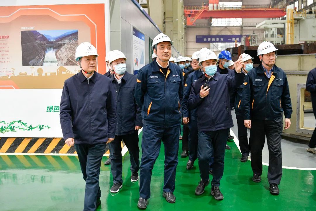 本網訊 2月5日,生態環境部副部長、黨組成員兼國家核安全局局長董保同到東方電氣德陽地區相關涉核企業調研座談,集團公司黨組書記、董事長俞培根,股份公司副總裁高峰陪同調研并出席座談。