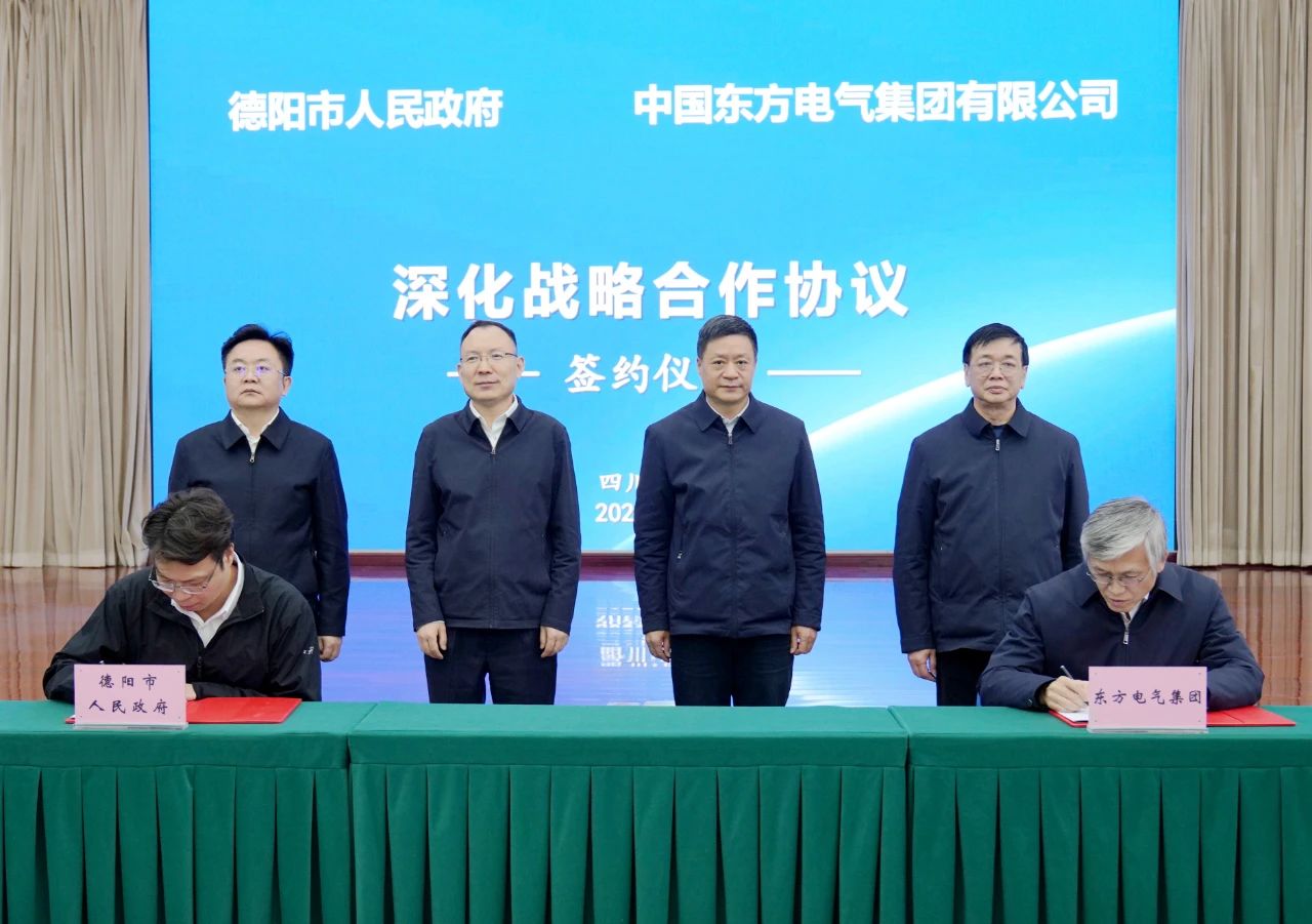 本網訊 1月31日,東方電氣集團與德陽市人民政府深化戰略合作協議簽約儀式在蓉舉行。東方電氣集團黨組書記、董事長俞培根,德陽市委書記李文清出席簽約儀式并講話。東方電氣集團黨組成員、副總經理張繼烈、張彥軍、李忠軍,德陽市委副書記、市長劉光強,市人大常委會主任盧也,市政協主席何明俊出席活動。