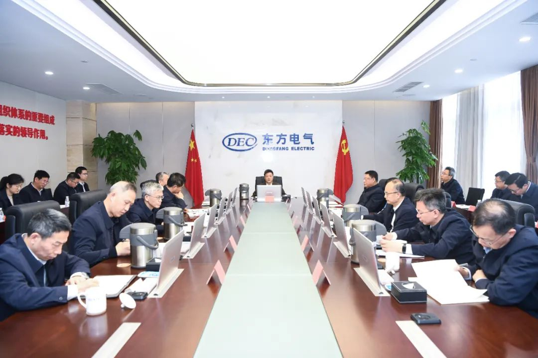 本網訊 4月7日,東方電氣集團黨組召開專題會議,認真傳達學習貫徹3月30日中央政治局會議精神、習近平總書記在中央政治局第四次集體學習時的重要講話精神,學習貫徹習近平新時代中國特色社會主義思想主題教育工作會議精神,緊密結合集團公司工作實際,研究貫徹落實措施。集團公司黨組書記、董事長俞培根主持會議并講話。黨組成員宋致遠、劉智全、張繼烈、孫國君、袁明剛、張彥軍、李忠軍出席會議。