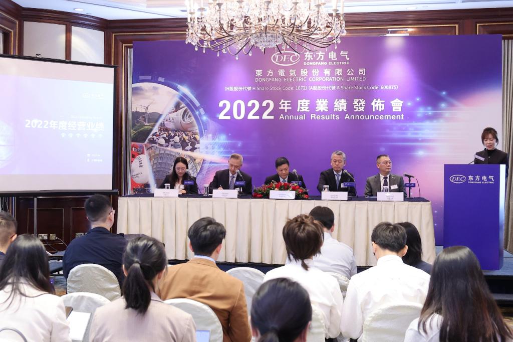 本網訊 4月11日,東方電氣股份有限公司在香港召開2022年度業績說明會。公司董事長俞培根、總會計師劉智全、副總裁高峰、董事會秘書馮勇等公司領導出席會議。來自摩根士丹利、花旗銀行、中金公司、中銀國際等機構的投資者、分析師共40余人現場參加活動。同時,全球各地超過3000位投資者通過網絡、電話等方式參加了業績說明會。