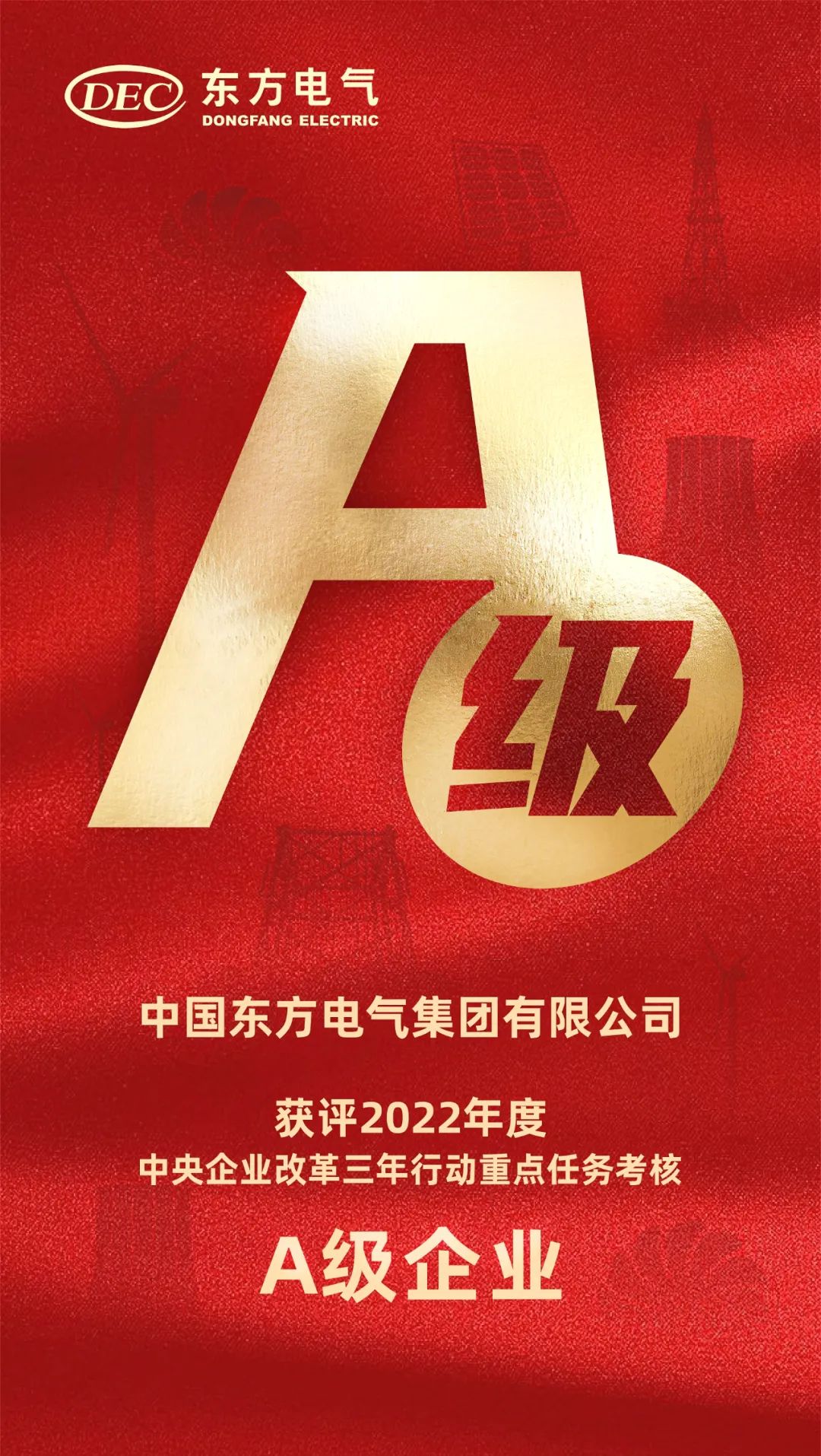 本網訊 6月26日,國務院國資委發布《2022年度中央企業改革三年行動重點任務考核A級企業名單》,中國東方電氣集團有限公司獲評2022年度中央企業改革三年行動重點任務考核A級企業,連續兩年獲評A級殊榮!