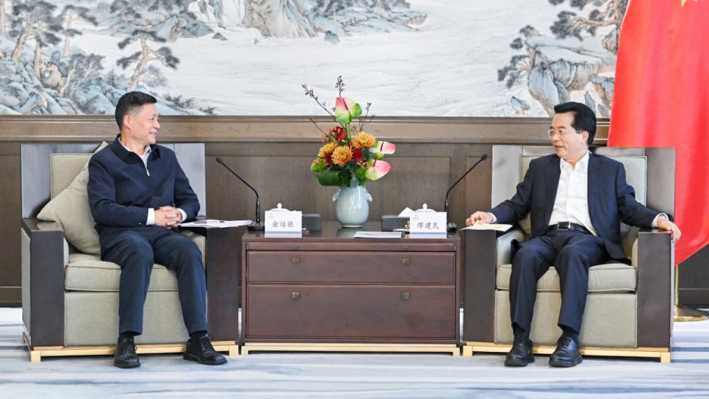 儀式前,雙方就構建戰略合作、新興產業協同等進行了會談交流。