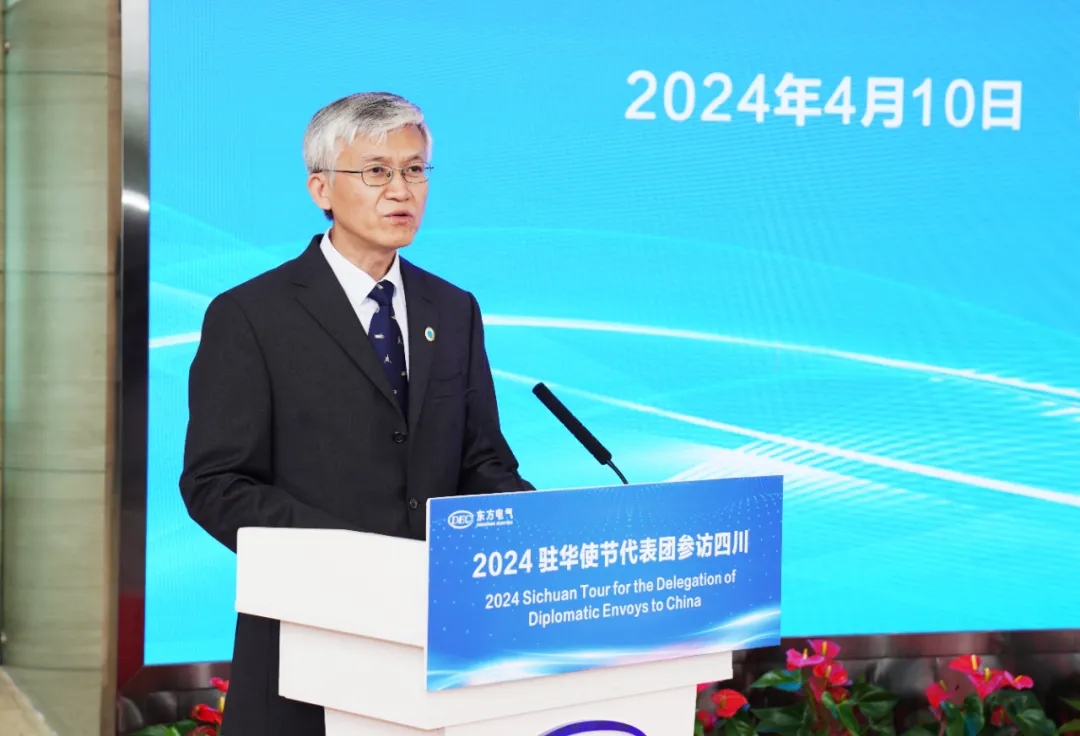 張彥軍在致辭中對各位使節朋友們的到來表達了最熱切的歡迎,向各國政府和合作伙伴給予東方電氣集團的大力支持和幫助表示衷心的感謝。張彥軍簡要介紹了東方電氣產業發展情況及海外業務發展情況,表示東方電氣集團以“綠色動力、驅動未來”為使命,將牢牢把握綠色、低碳、智能發展趨勢,加快理念、科技、模式、產品等全方位創新,以更先進的理念、更完善的商業模式、更優質的產品、更卓越的服務,積極參與共建“一帶一路”,深化與各國政府企業的友好合作,為構建人類命運共同體貢獻力量。