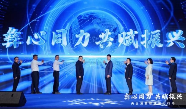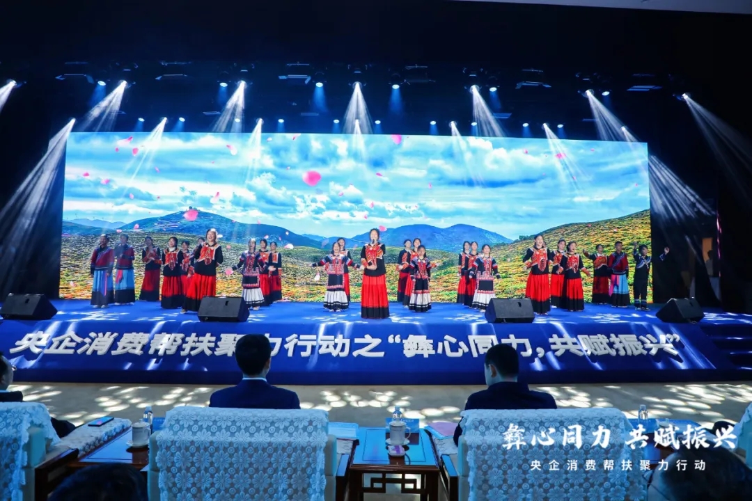 與會領導共同為央企消費幫扶聚力行動之“彝心同力 共賦振興”購物節(jié)按下啟動鍵。