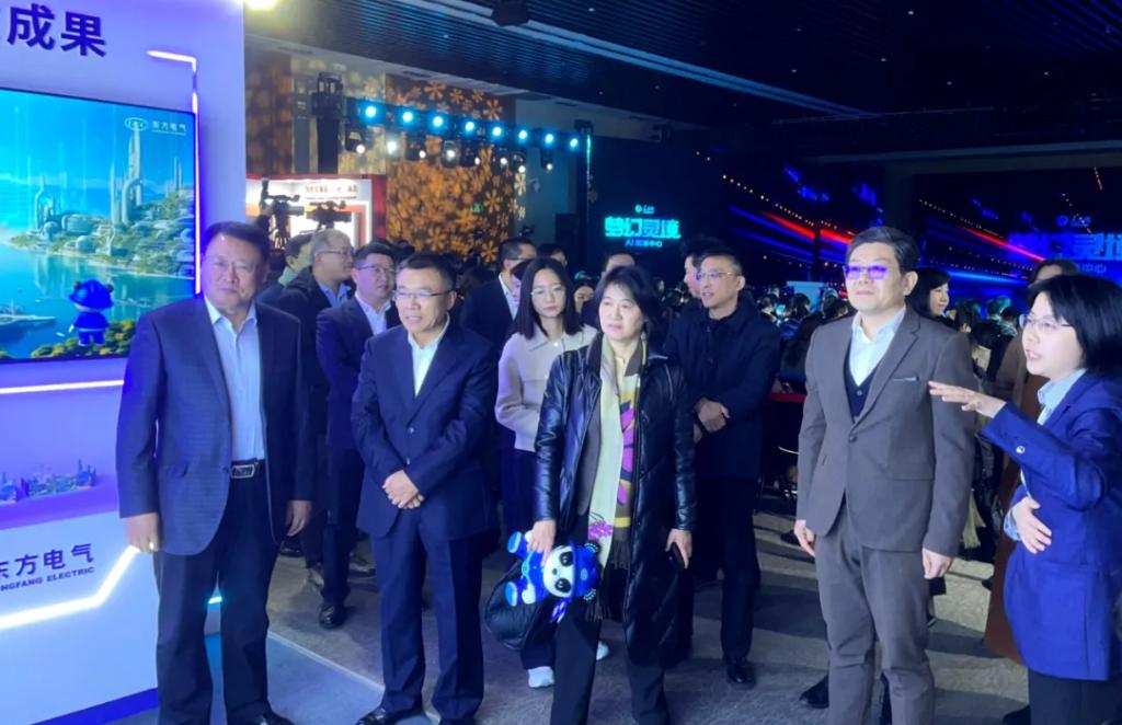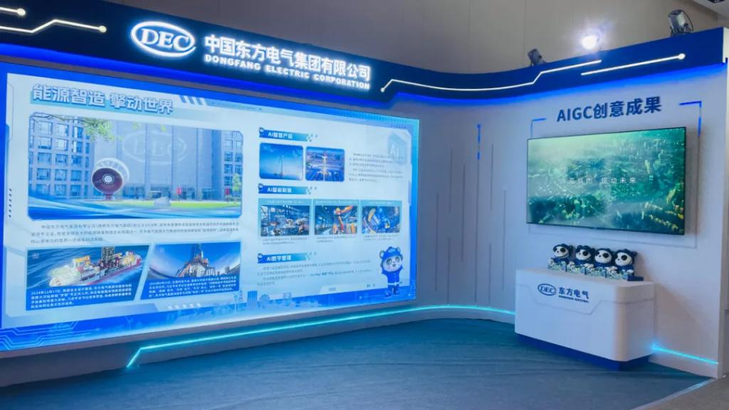 活動(dòng)期間,嘉賓們還參觀了首屆中央企業(yè)AIGC創(chuàng)意傳播成果展,東方電氣集團(tuán)打造的“能源智造 擎動(dòng)世界”主題展臺(tái)受到關(guān)注,集中展出了東方電氣集團(tuán)綠色智造、AI高端裝備制造的創(chuàng)新形象。