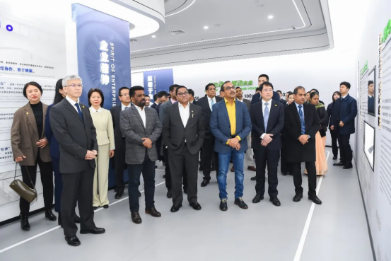 迪薩納亞克一行參觀了東方電氣科技展示廳,詳細(xì)了解東方電氣集團(tuán)發(fā)展歷程、綠色裝備制造、科技創(chuàng)新成果、高質(zhì)量共建“一帶一路”等方面情況。參觀過程中,迪薩納亞克對(duì)東方電氣集團(tuán)風(fēng)電、水電等新能源科技和燃?xì)廨啓C(jī)技術(shù)表現(xiàn)出濃厚興趣,并稱贊東方電氣集團(tuán)為促進(jìn)斯里蘭卡當(dāng)?shù)亟?jīng)濟(jì)發(fā)展作出的貢獻(xiàn)。他表示,斯里蘭卡一直堅(jiān)持推動(dòng)高質(zhì)量共建“一帶一路”,促進(jìn)本國(guó)可再生能源產(chǎn)業(yè)的發(fā)展和升級(jí),希望東方電氣集團(tuán)積極參與斯里蘭卡能源項(xiàng)目開發(fā)和建設(shè)。