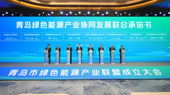 會議舉行了青島市綠色能源產業(yè)聯盟揭牌儀式,同步成立青島市氫能發(fā)展促進聯盟(子聯盟)、青島市固態(tài)電池產業(yè)聯盟(子聯盟)。與會企業(yè)簽署了《青島綠色能源產業(yè)協(xié)同發(fā)展聯合承諾書》,并圍繞海上風電技術、海水無淡化原位制氫技術等進行企業(yè)推介和產品發(fā)布。