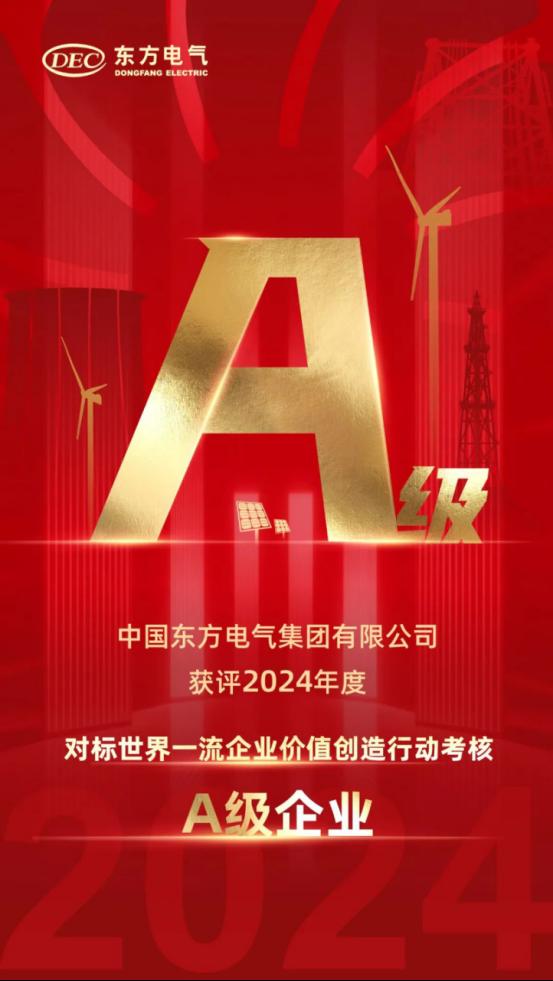 近日,國務院國資委公布中央企業2024年對標世界一流企業價值創造行動考核結果,東方電氣集團獲評A級。